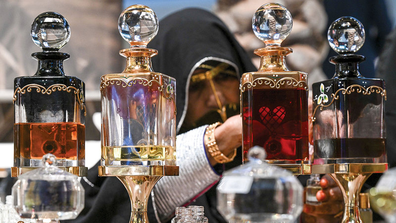 بخبرة السنين الطويلة، جدة تضع لمساتها على عطورها الإماراتية الأصيلة، لتنشر رائحة المسك والعود والعنبر، بين يدي زوّار من الشرق والغرب، خلال الحدث العالمي، الذي استضافته دبي، أخيراً.. سوق السفر العربي.