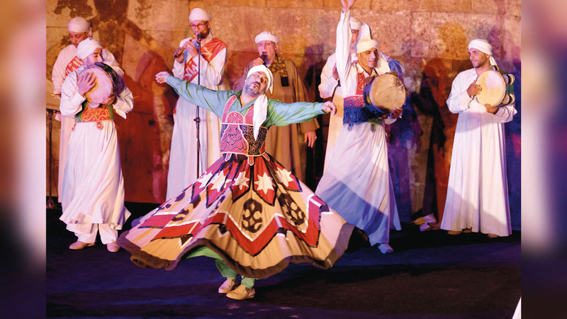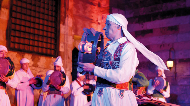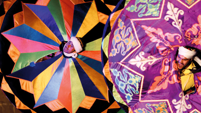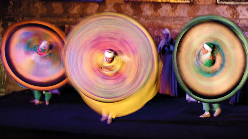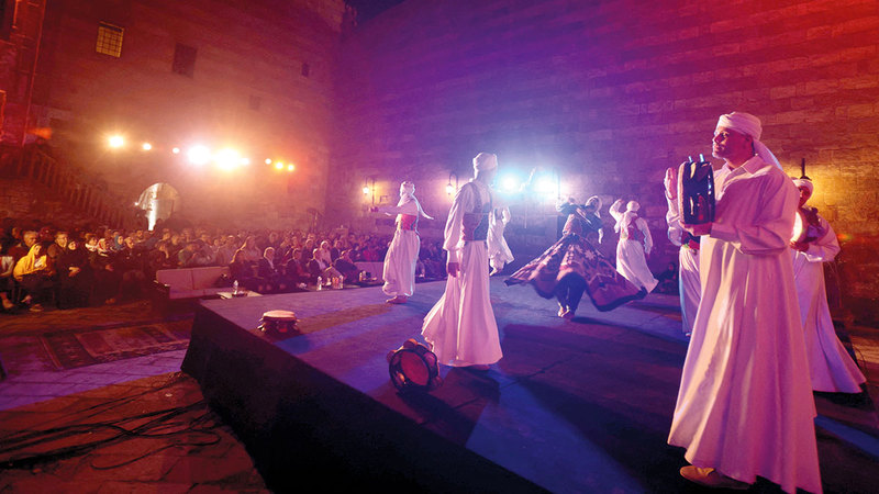 فنانون مصريون يؤدون طقوس «التنورة»، وهي نسخة مصرية من الرقص الصوفي، في قصر الغوري بالمنطقة الإسلامية القديمة في القاهرة.