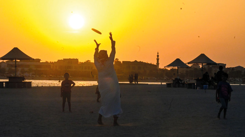 مرح بلا حدود يجمع أفراد العائلة، والاستمتاع بلحظات الغروب، وأشعة الشمس الذهبية التي تلوّن الرمل والبحر، خلال عطلة نهاية الأسبوع الماضي، على شاطئ الممزر في دبي، الذي يُعدّ وجهة أولى للأفراد والأسر.