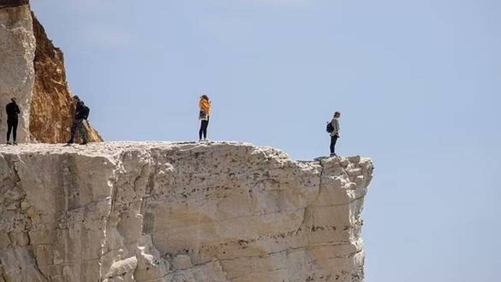 التقط البريطاني فيليب كارتر، 61 عاماً، بضع لقطات لسياح يخاطرون بحياتهم من أجل التقاط صور «سيلفي» لهم بالقرب من حافة جرف طباشيري متصدع بارتفاع 30 متراً في سيفورد هايد، شرقي ساسكس، على الرغم من وجود لافتات تحذيرية.