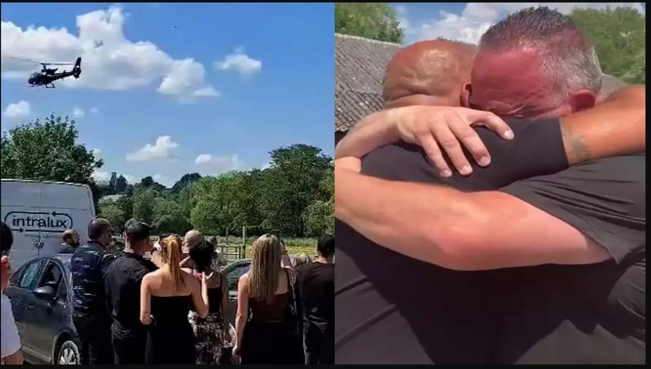 وشارك أحد مستخدمي المنصة الاجتماعية ممن حضروا الجنازة لقطات للمروحية وهي تهبط في حقل يتجمع فيه الأصدقاء والعائلة، حيث هرع الكثيرون لتحية بيرتن واحتضانه أثناء خروجه منها. كما شارك صديقه المقرب توماس فاوت مقطع فيديو للرجلين وهما يتعانقان بعد لم شملهما، مع تعليق على المقطع العاطفي "لقد حصلت علينا".
