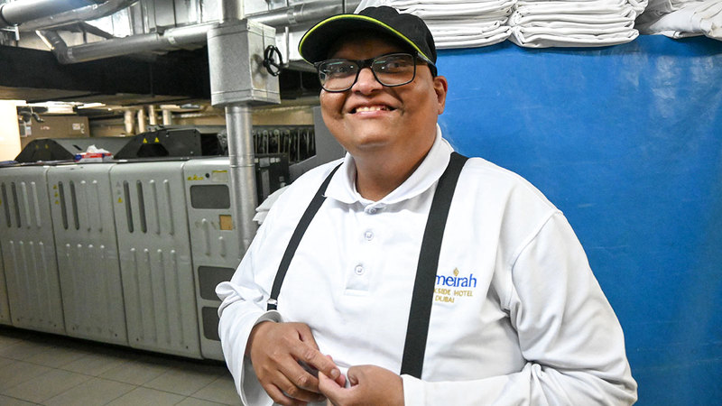 من مكتب الاستقبال، مروراً بالنادي الرياضي، وصولاً إلى غرف غسيل الملابس، وغيرها من المهام، ينخرط أصحاب همم، بابتسامة لا تفارق وجوههم البريئة، في قطاع الضيافة، وفي العديد من الميادين، رافعين شعار نعم نحن نستطيع، عبر برنامج تدريبي يعمل على تنمية مهاراتهم، وتمكينهم في سوق العمل، يقدمه مركز منزل بالتعاون مع فندق «جميرا كريك سايد» في دبي، وغيره من الوجهات والمؤسسات.
