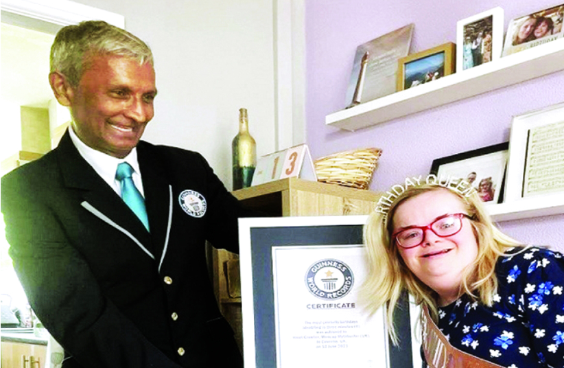 سجلت امرأة بريطانية مصابة بمتلازمة داون، رقماً قياسياً عالمياً لتحديد أكبر عدد من أعياد ميلاد المشاهير في ثلاث دقائق، وقالت إنها فخورة جداً بتحدي التصورات حول ما يمكن للأشخاص المصابين بمتلازمة داون تحقيقه.