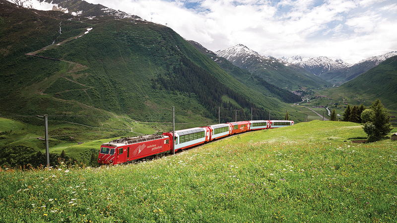 رحلة القطار الممتعة هذه أو ما يعرف بـ«الجولة الكبرى في سويسرا» توفّر جولة بانورامية للعائلة في أحضان الطبيعة السويسرية، الشهيرة.