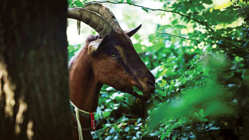 لا حاجة بمتنزه في ولاية تكساس الأميركية لاستخدام المنشار أو مبيدات الأعشاب لمكافحة تلك الضارة منها التي تعيق نمو الأشجار، إذ تتولى المهمة بشهية فرقة من الماعز تنقض على النباتات الدخيلة نهشاً، ويتسم أداؤها بالفاعلية ومراعاة المعايير البيئية.
