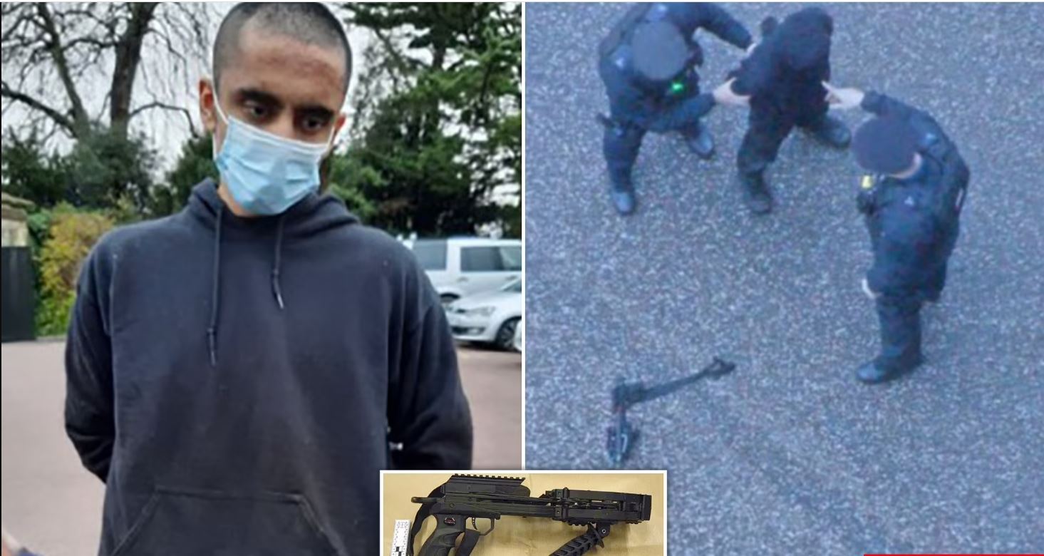 وفي النهاية تم توقيفه من قبل ضابطي شرطة بالقرب من المقر الخاص للملكة الراحلة، حيث كانت هي وأفراد آخرون من العائلة المالكة موجودين هنالك في ذلك الوقت، بعد أن واجهه الضباط ببنادق الصعق، قال تشايل:"أنا هنا لقتل الملكة".