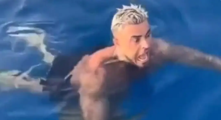 وقامت واحدة من الأصدقاء بتنبيه السباح بأن يهدأ ولا ينفعل أو يصدر حركات عنيفة حتى لا يلفت انتباه القرش فيهاجمه. وبالفعل نجح السباح في التزام الصمت لثوانٍ، إلا أنه حينما لامسه القرش لم يستطع التحمل وصرخ، فيما بدت علامات الرعب على وجهه.