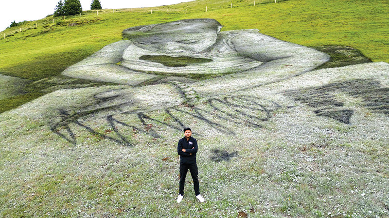 وقال سايبه إن لوحتيه على مساحة 3000 متر مربع ويمكن رؤيتهما من قمة الجبل والمراعي القريبة، وترمزان إلى الحاجة إلى تبني وجهات نظر مختلفة ورفض الجمود.