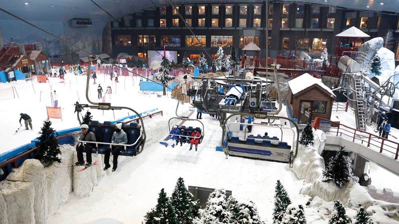 يوفر «سكي دبي»، أول منتجع تزلج داخلي في الشرق الأوسط، تجربة عائلية فريدة، خصوصاً في أجواء الصيف وارتفاع درجات الحرارة. وتشكل زيارته رحلة ينتقل فيها الزائر في لحظات من عالم إلى آخر، ليختبر التزلج والتزحلق على الجليد بالألواح أو الزلاجات، وحتى مقابلة طيور البطريق.