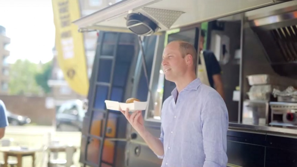 فاجأ الأمير البريطاني وليام زبائن عربة برغر بتقديم برجر صديق للبيئة من داخل العربة في جنوب لندن.