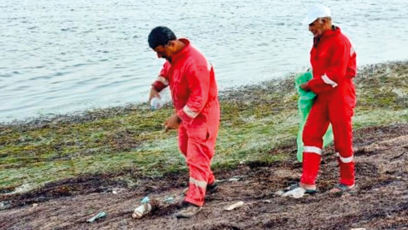 جامعو نفايات غير رسميين في برنامج «قرقنة خالية من البلاستيك». أ.ف.ب
