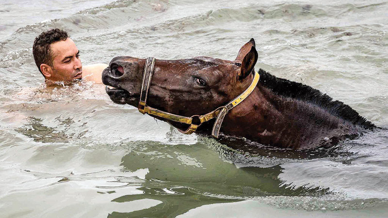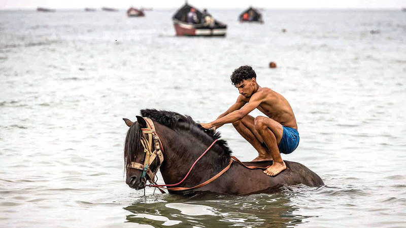 فرسان مغاربة وخيول في مياه المحيط الأطلسي