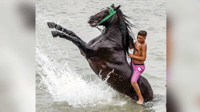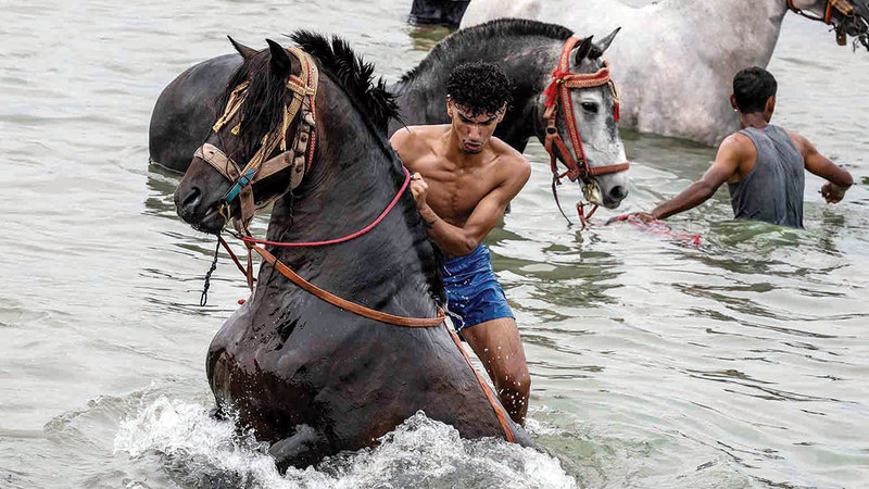 عدد من الفرسان يغسلون خيولهم في مياه المحيط الأطلسي تزامناً مع انطلاق فعاليات المهرجان المغربي الشهير «مولاي عبدالله أمغار». ويعد الحدث من المهرجانات الشعبية والدينية والثقافية البارزة في المغرب، ويتميز بأنشطة متنوعة وفعاليات من أبرزها أنشطة الفروسية، إضافة إلى الفعاليات الفنية والترفيهية العديدة.