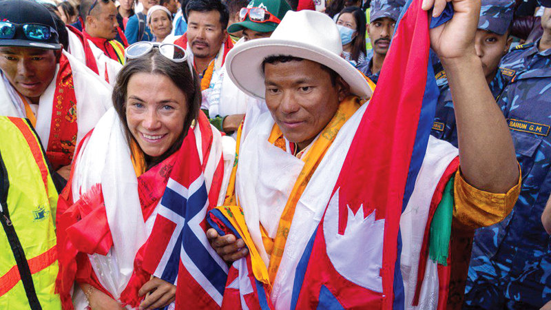 مع دليلها النيبالي تنجين شيربا، تسلقت النرويجية هذه القمم الـ14 في ثلاثة أشهر ويوم واحد (92 يوماً)، منتزعة في 27 يوليو الماضي الرقم القياسي العالمي الذي كان يحمله سابقاً النيبالي البريطاني نيرمال بورجا.