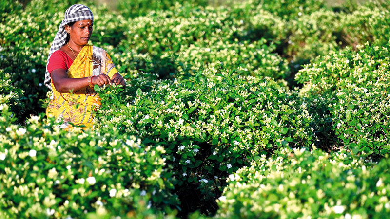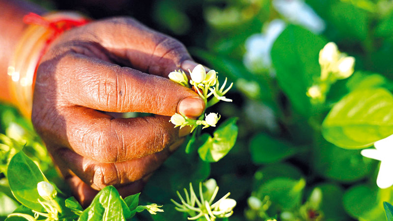 تفوح روائح منعشة في كل مكان حول قاطفات ماهرات في جنوب الهند يتولين حصد براعم من الياسمين الأبيض قبل عصرها لاستخراج جوهرها الثمين الذي يستخدمه صانعو العطور في أنحاء العالم.
