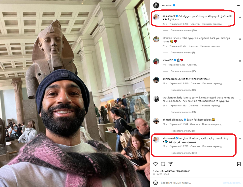وعلقت عبلة كامل على منشور لصلاح في تطبيق "إنستغرام": "أنا بحبك زي ابني رسالة مني خليك في ليفربول أنت مشرفنا والله وبلاش الاتحاد يا أبو صلاح دي خطوة الاعتزال احنا مستنين منك أكثر من كده".