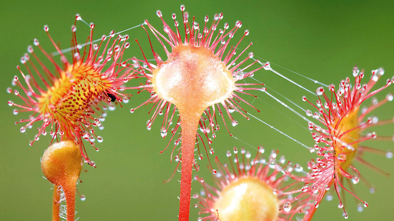 كما تشتهر نباتات «الندية»، التي تنتمي إلى فصيلة مكوّنة من 194 نوعاً من النباتات، بمظهرها البديع وأسلوبها الفريد في اصطياد فرائسها. استلهم اسم هذا النبات من قطرات الندى، حيث تنجذب الحشرات لتلك القطرات المتلألئة برائحة الرحيق لتجد نفسها ضحية لهذا النبات المفترس.