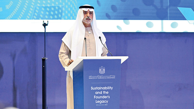 أكد الشيخ نهيان بن مبارك آل نهيان، وزير التسامح والتعايش، أن مؤتمر الأطراف «COP28» الذي تستضيفه الإمارات في نوفمبر المقبل، يُعدّ فرصة مثالية مواتية لعرض إنجازات الإمارات أمام العالم بأسره كدولة متماسكة اجتماعياً ومستدامة اقتصادياً، مبيناً أن الإمارات كبلد مسالم، لا تتهاون في تعزيز السلام والتسامح والتعاون الإقليمي والعالمي، فمنذ القيادة التاريخية للوالد المؤسس الشيخ زايد بن سلطان آل نهيان، طيب الله ثراه، استمراراً للقيادة الحكيمة لصاحب السموّ الشيخ محمد بن زايد آل نهيان، رئيس الدولة، حرص المجتمع الإماراتي على النظر إلى الآخرين من خلال عدسة مختلفة، لا يكبلها الجهل والشك والصورة النمطية والتعصب، وإنما بالالتزام بمبادئ ثابتة لا يحيد عنها، ترتكز على الحل السلمي للصراعات والمشكلات البشرية.