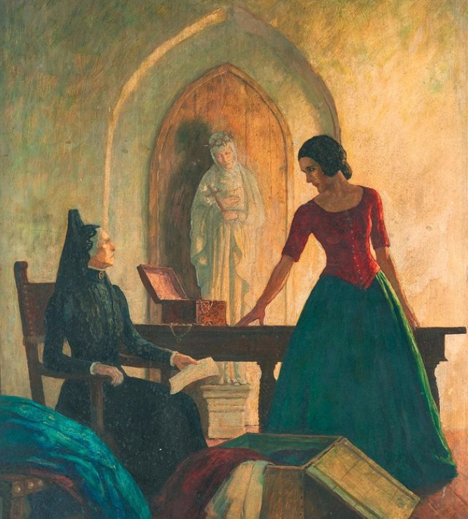 وكانت اللوحة التي تحمل عنوان رامونا، واحدة من أربع لوحات رسمها الفنان المقيم في بنسلفانيا لطبعة عام 1939 من كتاب رامونا للكاتبة هيلين هانت جاكسون عام 1884. ويصور العمل امرأة شابة يتيمة في صراع مع والدتها الحاضنة.
