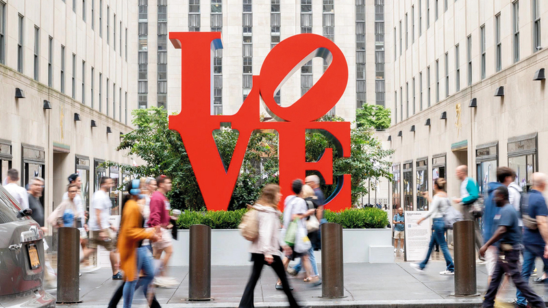 بعدما كان علامة مألوفة في زاوية أحد الشوارع في وسط منهاتن لسنوات عديدة، صار تمثال «لاف» (الحب) الشهير بحروفه الضخمة الحمراء، مكاناً شهيراً لالتقاط صور السيلفي مجدداً في قلب نيويورك.