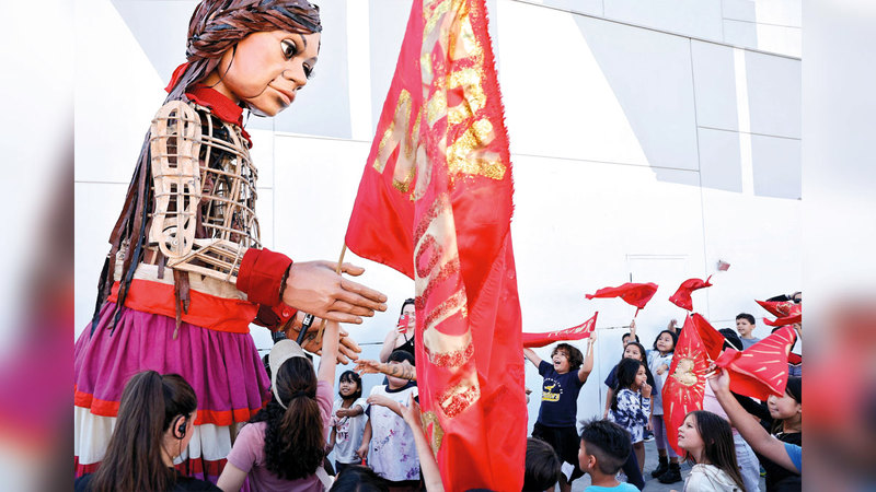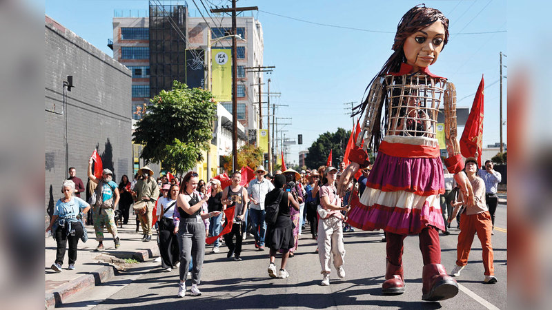 جمهور كبير كان في استقبال أمل الصغيرة، في مدينة كاليفورنيا الأميركية، وهي دمية عملاقة لطفلة عملاقة بدأت رحلتها عبر العالم منذ أشهر، وجابت أبرز عواصم العالم لتروي معاناة الأطفال خلال سنوات الحرب الطويلة.