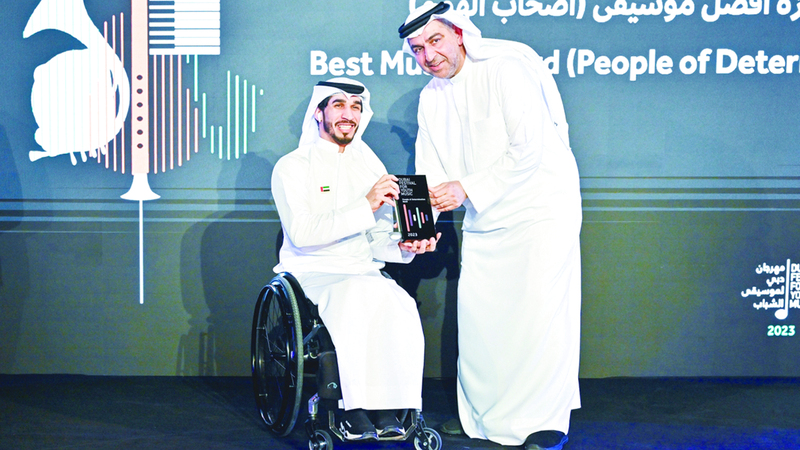 جمع الحفل الذي أقيم في «مكتبة محمد بن راشد» 90 موهبة متميزة في العزف والغناء، فضلاً عن تقديم رقصات العيالة واليولة من فرقة نادي أصحاب الهمم، ما يؤكد التزام الهيئة بدعم المواهب ورفد القطاع الموسيقي بطاقات شابة جديدة. وتم تكريم الموسيقار إبراهيم جمعة، بلقب «شخصية العام» الموسيقية، تقديراً لمسيرته الفنية، وإسهاماته في إثراء المشهد الفني المحلي.