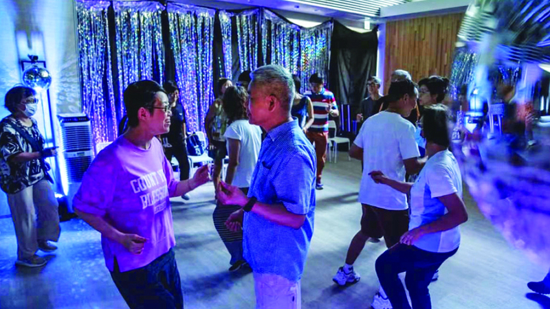 المركز المزيّن بكرات الديسكو وكريات متلألئة من الأرض إلى السقف يستقبل حصص رقص لكبار السن. أ.ف.ب