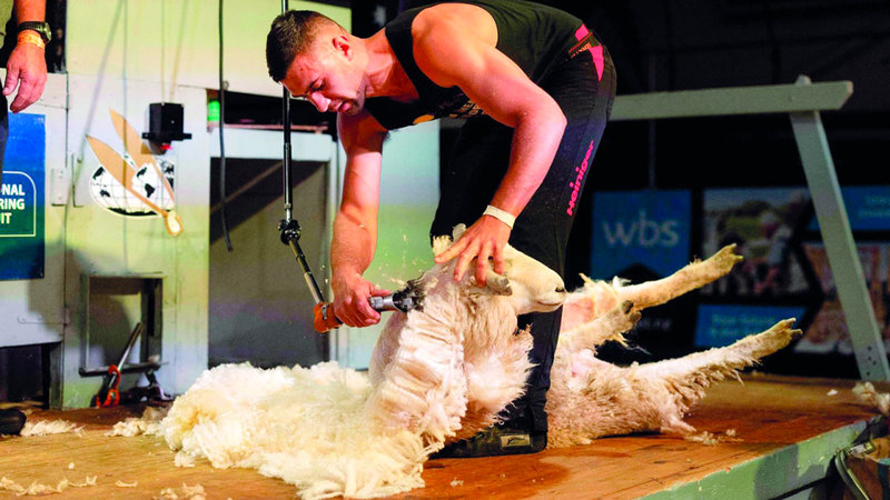 العامل المحترف يجزّ ما يصل إلى 400 خروف يومياً. أ.ف.ب