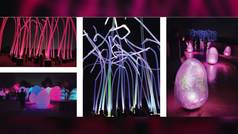 عبر تفاعلات الضوء مع عناصر البيئة والألوان والأصوات، يحتفي الفنانون المشاركون في السلسلة الثانية من معرض «منار أبوظبي»، والتي كشفت عنها دائرة الثقافة والسياحة - أبوظبي، أخيراً، في أعمالهم الفنية التي توزعت بين جزر العاصمة أبوظبي وشملت الحياة والطبيعة والتفاعل المتواصل بين الإنسان والكائنات الحية من جهة، والبيئة المحيطة بها من جهة أخرى، حيث إن الأعمال التي يضمها المعرض تعد جزءاً من أكثر من 35 عملاً من الأعمال التكليفية الفنية المخصصة للمواقع، بتوقيع أكثر من 20 فناناً محلياً وإقليمياً وعالمياً.