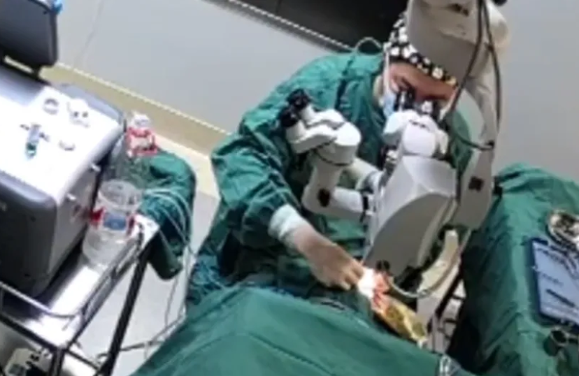 ويظهر الفيديو الجراح وهو يلكم رأس مريضة ثلاث مرات على الأقل أثناء إجراء عملية جراحية على عينيها.
