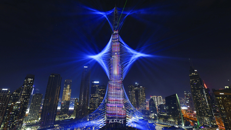 كما اللؤلؤة المشعة من كل الزوايا، توهجت دبي بالأضواء والألوان المبهجة والتفاؤل والأمل في أمسيتها المنتظرة من العام إلى العام، إذ رحّبت - وعيون الملايين من الشرق والغرب عليها - بالعام الميلادي الجديد، راسمة السعادة على الوجوه من كل أرجائها، لتتعدد محطات الفرح في تمام منتصف ليلة رأس السنة، وتمتد من أعلى نقطة، حيث برج خليفة، وليس بعيداً عنه برواز دبي، مروراً ببرج العرب ومنتجع أتلانتس على ساحل الخليج، وليس انتهاء بالقرية العالمية، والعديد من المواقع والمعالم، لتتلون سماء المدينة بالتشكيلات المبهرة والألعاب النارية، احتفالاً بالساعات الأولى من 2024، لتكتب دبي معايدة بحروف من نور وأمل، توثقها عدسات العالم.