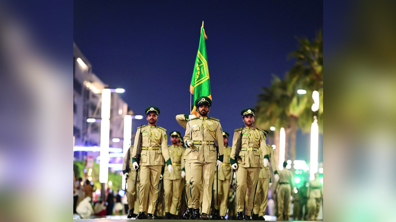 وانطلق العرض من كوكا كولا أرينا ليجوب شارع السعادة، بمشاركة المرشحين والمرشحات من أكاديمية شرطة دبي، والفرقة الموسيقية لشرطة دبي، وفرق إدارة التفتيش الأمني k9، والخيالة والدوريات الأمنية، والدوريات الفارهة، والدرّاجات الهوائية والدرّاجات النارية، والفرق التخصصية التابعة للإدارة العامة لأمن الهيئات والمنشآت والطوارئ.