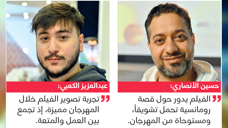 وقال المخرج حسين الأنصاري، عن هذه التجربة لـ«الإمارات اليوم» في كواليس العمل: «لقد تبلورت فكرة الفيلم من خلال مشروع مقترح للمشاركة في المهرجان، خصوصاً أننا أردنا الوجود في الحدث الذي شهدنا تطوره على مدار ثلاث سنوات، وقررنا أن يكون ذلك عبر تصوير الفيلم خلال أيام الحدث، على أن يتم العمل على إنجازه بالكامل ليعرض في اليوم الختامي، وهي المرة الأولى التي تنفذ فيها هذه الفكرة في مهرجان سينمائي في الدول العربية».