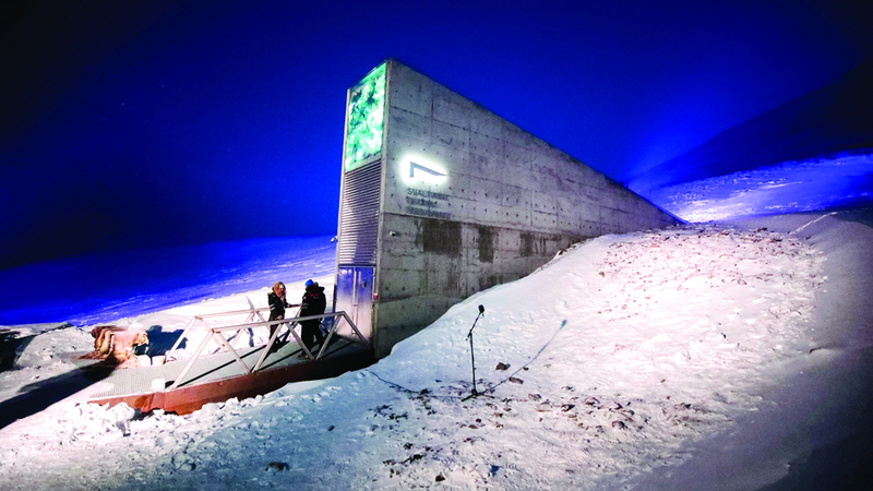 وحمل المودعون، أول من أمس، صناديق البذور إلى مدخل القبو، وهو عبارة عن مبنى طويل وضيق يبرز من التلال المغطاة بالثلوج.