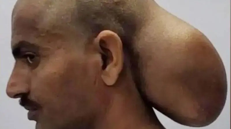 وأخبر المريض الأطباء أنه لاحظ لأول مرة وجود كتلة صغيرة على رأسه عندما كان عمره 24 عامًا، ومع مرور السنين، نما حجمها وأصبح كبيرًا ليصبح بحجم رأسه تقريبًا وبلغ قياسه 20 سم في 15 سم.