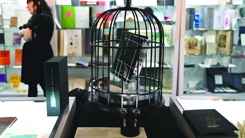 والكتاب الذي استغرق العمل على غلافه ثلاث سنوات مع «بنتلي آند سكينر» البريطانية المتخصصة في المجوهرات، وكان مخصصاً لشركة «لوكس مانتيس» الأميركية المتخصصة في بيع الكتب النادرة والفاخرة، معروض داخل قفص في المعرض الدولي للكتب النادرة والقديمة في نيويورك.