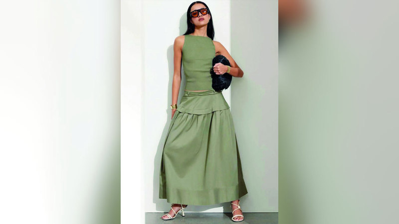 التانك توب الكاكي يبدو رائعاً في إطار الإطلالة أُحادية اللون. د.ب.أ