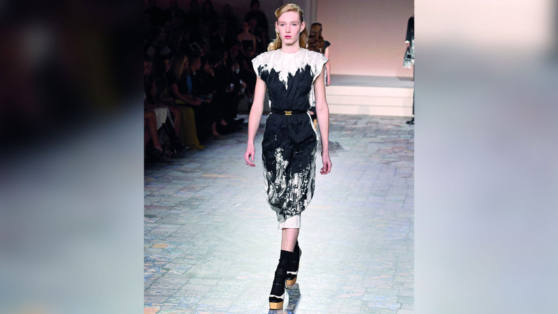 وبرز اللونان الأبيض والأسود مع إعادة ابتكار تصاميم رجالية من سراويل فضفاضة وربطات عنق وسترات وقبعات. وكان قماش «التويد» الحاضر الأبرز في التصاميم، معيداً التذكير بالموضة الرجالية لكن بنسخة أكثر سلاسة.