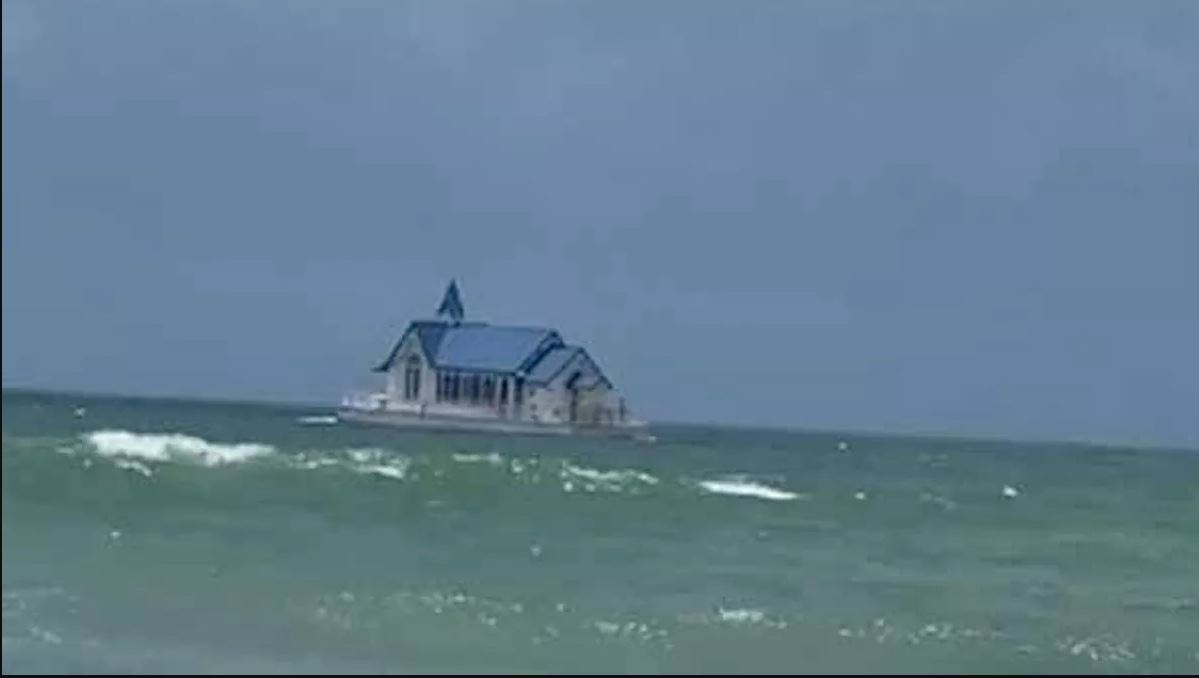 وكانت المرأة الملقبة بسكاي تستمتع بأشعة الشمس على أحد شواطئ فلوريدا عندما فوجئت بمشهد غريب، وسارعت لتصويره ليظهر لها منزل أمريكي تقليدي يتمايل على طول أمواج المحيط.
