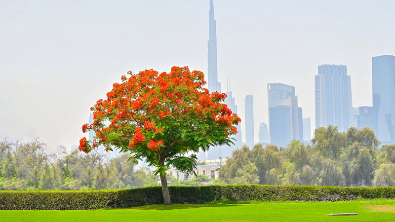 كيفما اتجهت هذه الأيام ستطالعك شجرة «بوانسيانا» الشهيرة، التي تزيّن بأزهارها الحمراء اللافتة شوارع دبي، لتشكّل لوحة جميلة تضاف إلى جمال دبي وأناقة شوارعها، وتعكس جهود بلدية دبي في نشر المسطحات الخضراء، وزراعة الأشجار التجميلية في الحدائق العامة والشوارع.