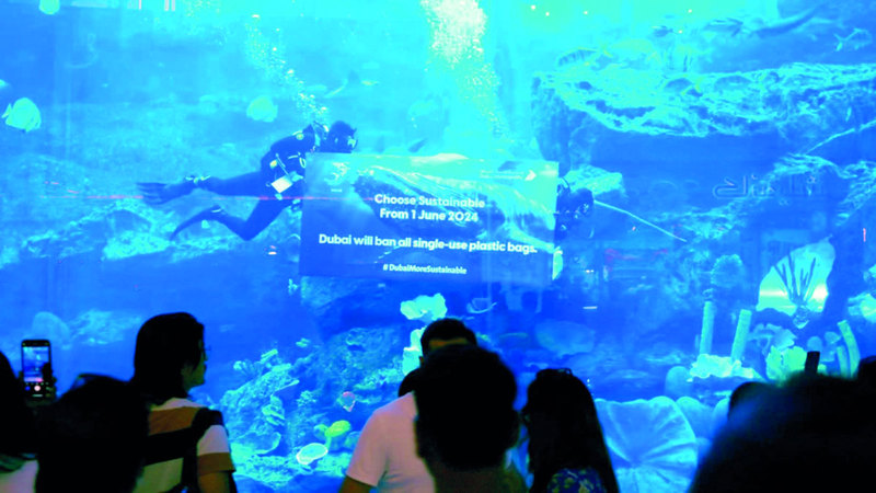 دبي أكثر استدامة.. لافتات توعية «تسبح في الأكواريوم»