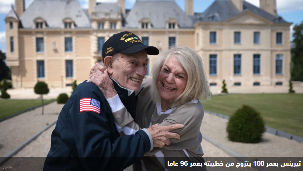 احتفل امس قرب الشواطئ التي شهدت إنزال قوات الحلفاء في النورماندي بفرنسا قبل ثمانين عاماً، بزواج الأميركي هارولد تيرينس البالغ مئة عام، أحد قدامى المحاربين في الحرب العالمية الثانية، من خطيبته جين سويرلين (96 عاماً).