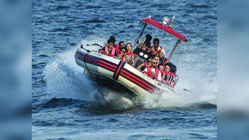 في أجواء عالية من الأمان والحرص على السلامة، رحلة بحرية تسرّع دقات القلوب، وترفع هرمون السعادة لأعلى مستوى، في مياه الخليج العربي بالقرب من «نخلة جميرا»، ليخوض ضيوف دبي تجارب حافلة بالمتعة، وأنشطة متنوعة، تمنح زوّار المدينة جرعات إضافية من التشويق والإثارة، على البر، وفي البحر، كما هي الحال هنا في الصورة التي تعلو فيها الابتسامة وجوه المشاركين في هذه المغامرة المائية، وسط تيارات الأزرق الشاسع، والنسمات التي ترطب طقس موسم الصيف، وتترك أثرها المنعش في جميع ركاب القارب.