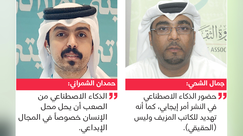 وقال الناشر والكاتب الإماراتي جمال الشحي: إن «وجود الذكاء الاصطناعي في مجال النشر أمر إيجابي، كما أنه تهديد للكاتب المزيف وليس (الحقيقي) الذي سيتمكن من توظيف هذه التقنية في البحث والدراسة، واستخدامها بأفضل وسيلة ممكنة».