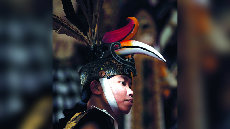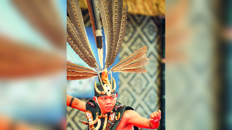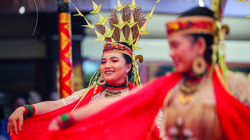 مجموعة من الراقصين يؤدون رقصة الحرب والحب التقليدية لقبيلة داياك في مهرجان بالي السنوي للفنون في دينباسار في بالي بإندونيسيا. وتستقطب عروض هذه القبيلة، المتفرجين وتحظى بشهرة عالمية، نظراً لفرادتها وتمسكها الشديد بعاداتها وتقاليدها ورقصاتها الشعبية المستمرة منذ 3000 عام.