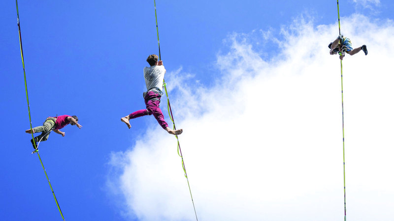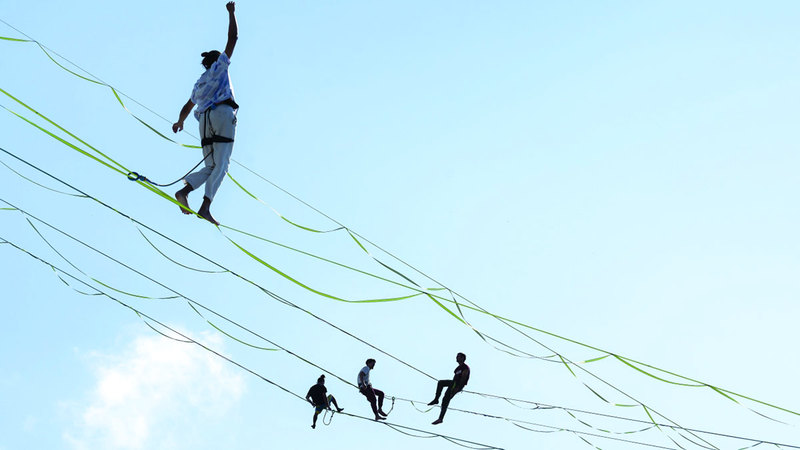 بطولة تحبس الأنفاس.. مغامرون على حبال بين مرتفعات شاهقة