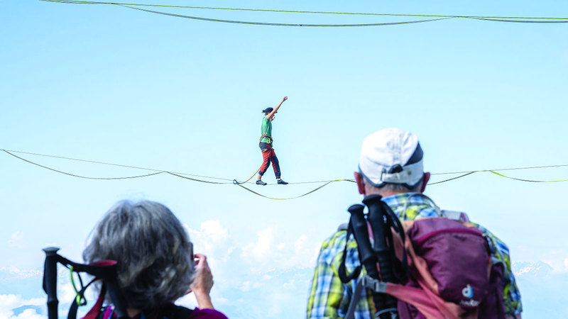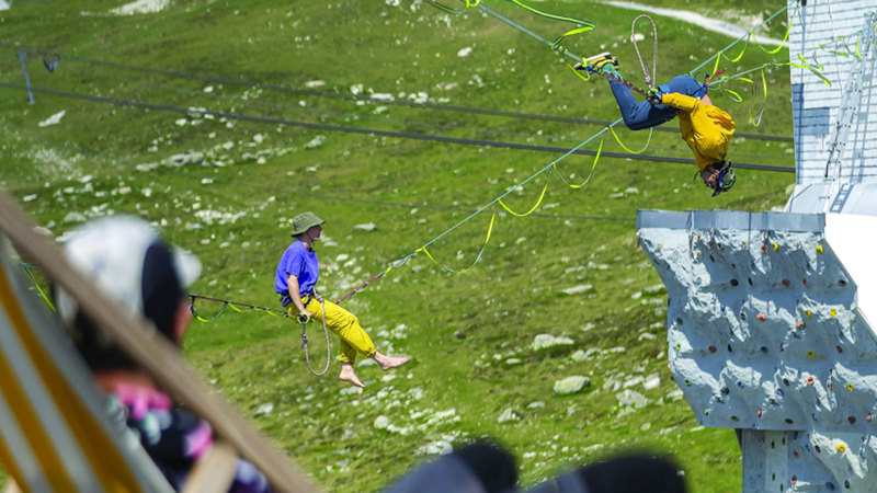 يتبارى العشرات من المغامرين الذي يمثلون دول العالم في بطولة سنوية تحبس الأنفاس تستضيفها جبال كراب سوغن غيون السويسرية، ويتوجب على المتسابقين المشي على الحبال على ارتفاعات شاهقة.