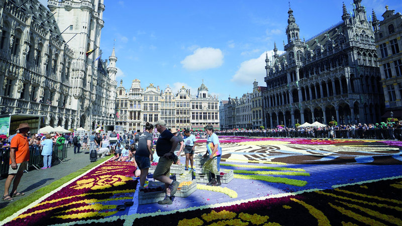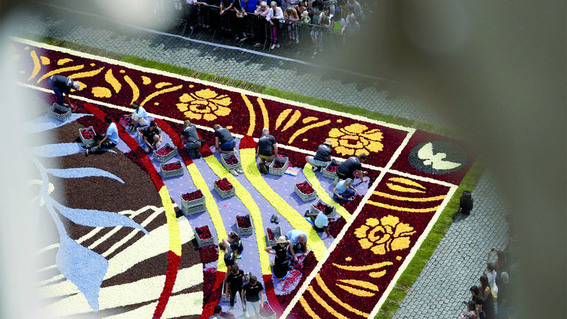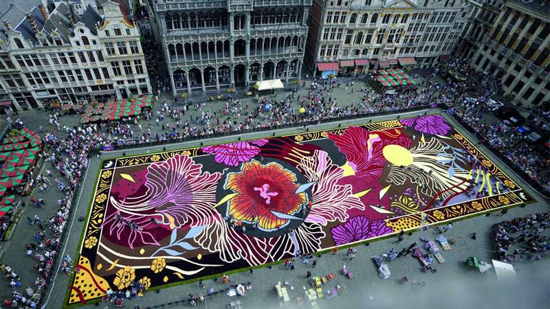 700 ألف زهرة من أجمل زهور العالم اجتمعت في ساحة جراند بليس التاريخية في بروكسل على مساحة 300 متر مربع، لتشكل أكبر سجادة من الزهور في العالم. وتم تصميم وتنفيذ هذه السجادة المدهشة في العاصمة البلجيكية بروكسل خلال الشهور الثلاثة الماضية، حيث اجتمع المئات من مختصي الزهور لاستخدام زهرة البيجونيا في صناعة هذه السجادة.