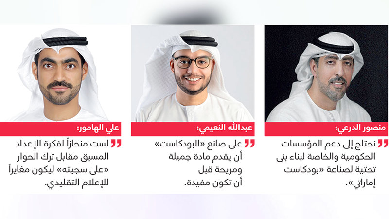 بين الرغبة في خوض غمار تجارب إعلامية جديدة، والتحديات التي تواجه الشباب الإماراتي، أكد عدد من صناع «البودكاست» المحلي حاجة المجال الماسة إلى التطوير والتنوع، وإيجاد مجموعة من المعايير الواضحة لهذه الصناعة الناشئة، مناشدين باستحداث حلول ناجعة للتغلب على تحدي الاستدامة المالية لمشاريع «البودكاست» العربي، ومعالجة الافتقار إلى مجالات التدريب السليم والفعال، وذلك تماشياً مع التقرير الأول من نوعه الذي أصدره نادي دبي للصحافة أخيراً.