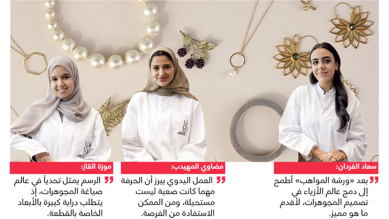 ومن عالم تصميم الأزياء والمنتجات انتقلت سعاد الفردان إلى المجوهرات، إذ شاركت في «ورشة المواهب» من أجل استكشاف هذا العالم الفاخر، لاسيما أنها تحمل الكثير من الاهتمام بهذا المجال.